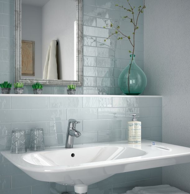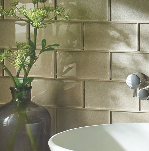 Subtle shades or striking, glass tiles are a versatile way to protect walls.