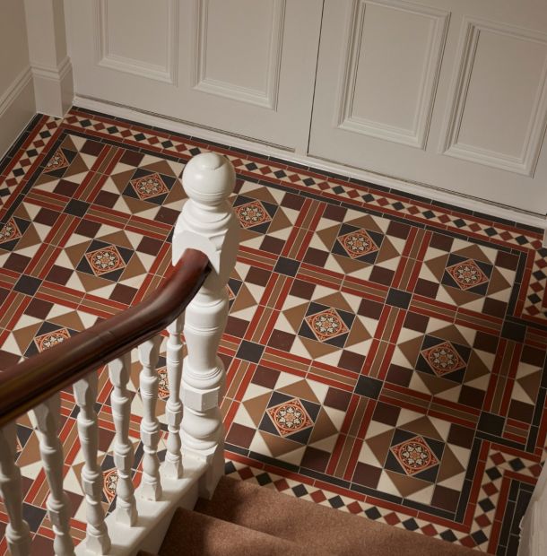 Handmade encaustic cement tiles with patterns from different colours of clay.